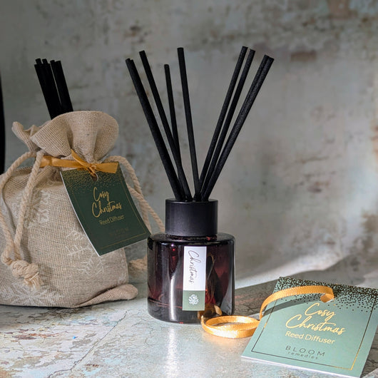 Our Cosy Christmas essential oil reed diffuser is lovingly created by us here in Cornwall and is infused with warming Cinnamon, festive Nutmeg, soothing Sweet Orange and uplifting Clove and Cardamom to evoke log fires, snuggly blankets and cosy nights in.