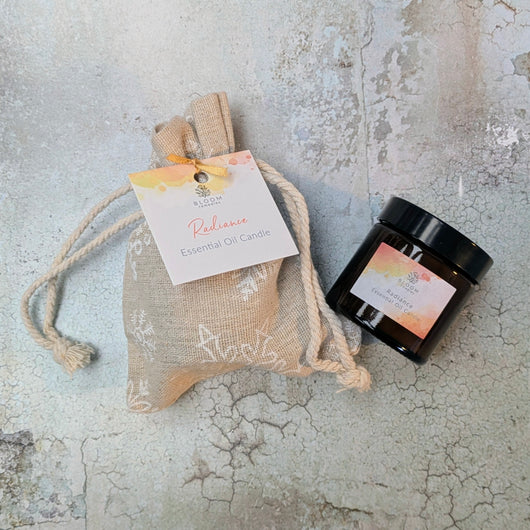 Our beautiful Radiance aromatherapy candle is now available as a cute mini gift in a linen drawstring bag. Infused with a potent blend of pure essential oils to uplift your mood and bring summer sunshine to grey winter days.